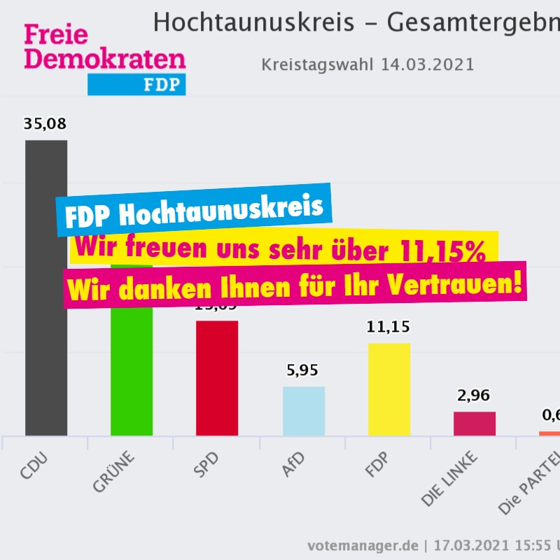 11,15% der FDP Hochtaunus bei der Kreistagswahl am 14.03.2021